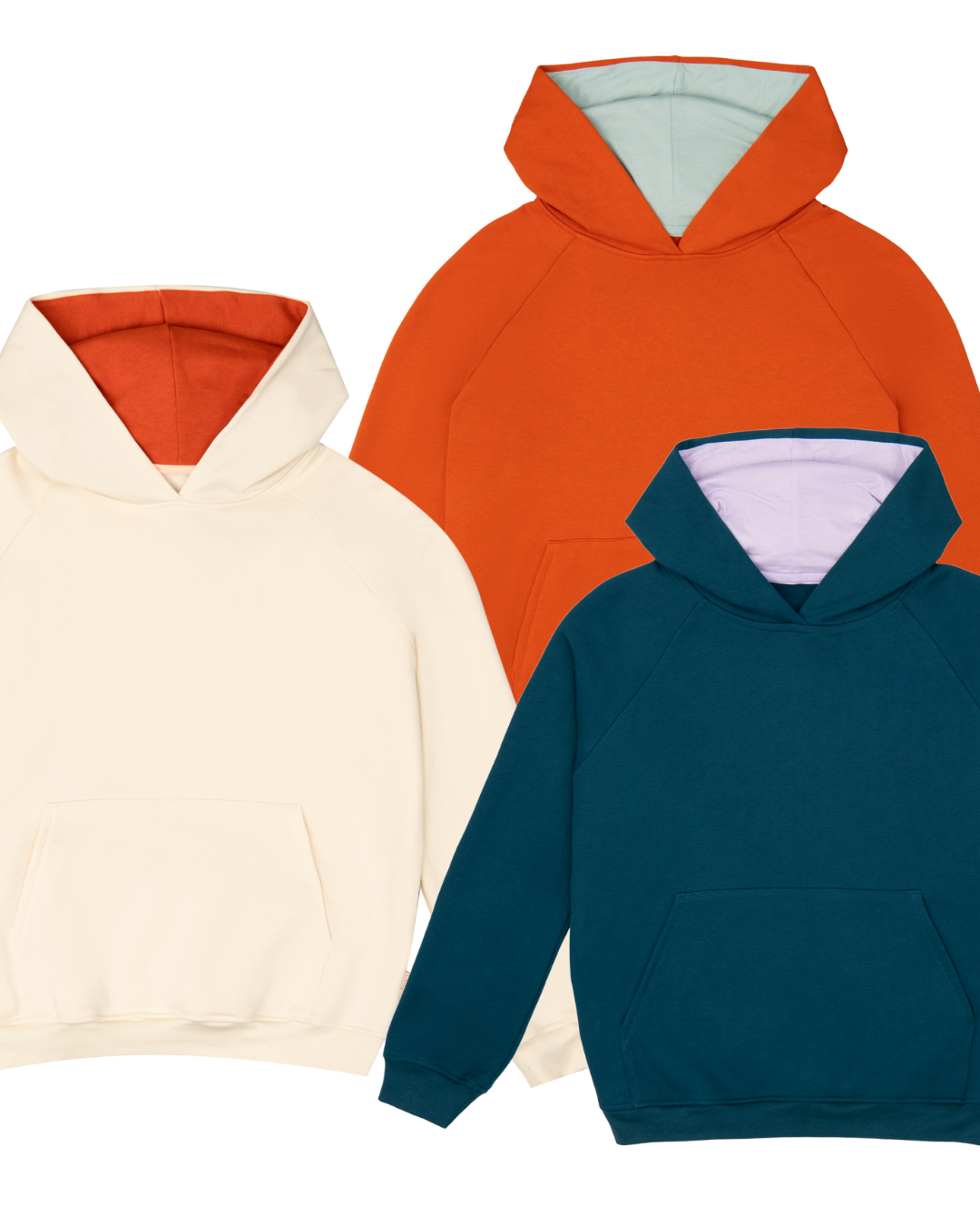 Innovativer Schnitt, kuschelige langlebige Bio-Baumwolle und bunte Farben für Kinder und Erwachsene.