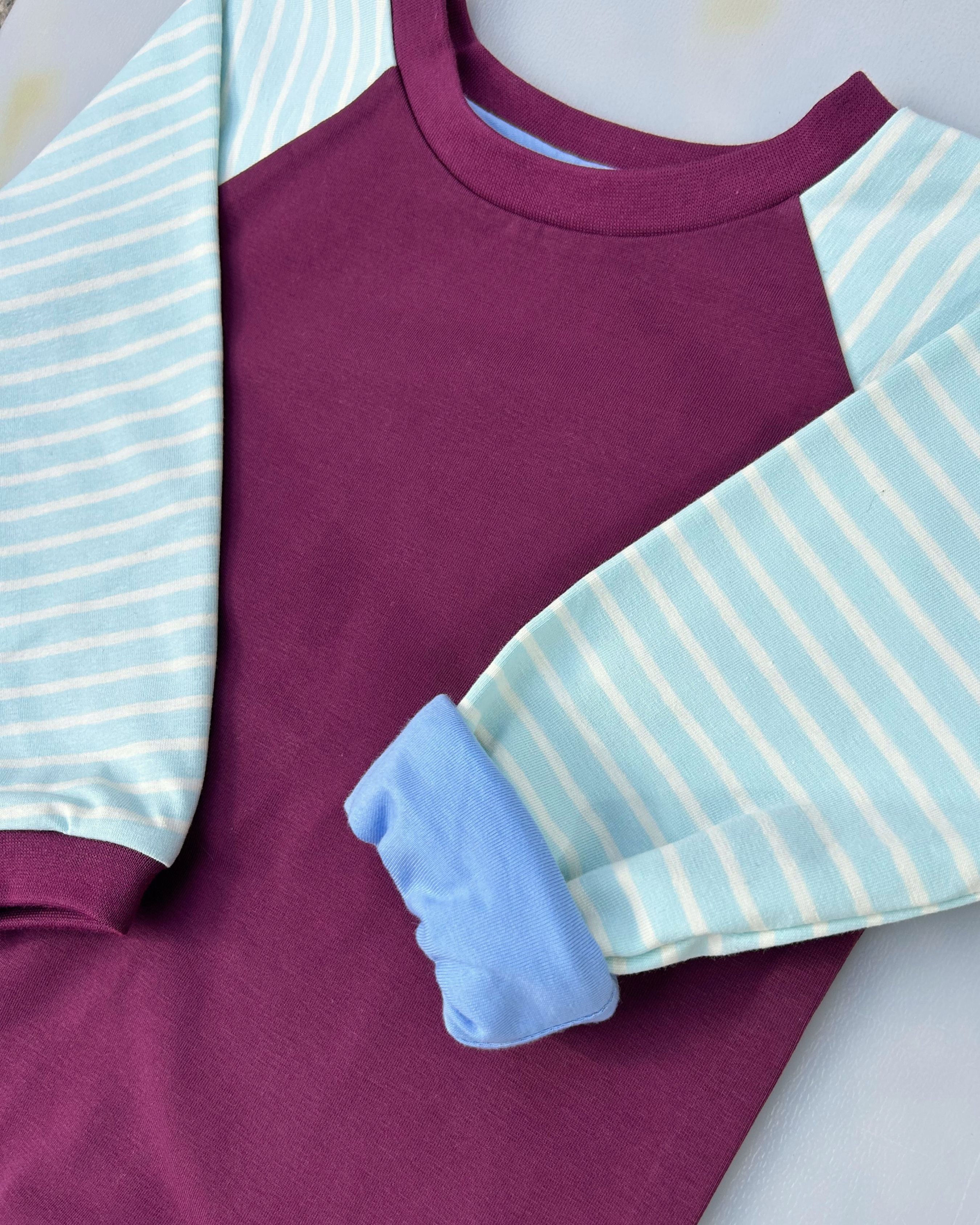 Mitwachsendes leichtes Langarmshirt aus Bio Baumwolljersey Kinder | Pflaume- Hellblau