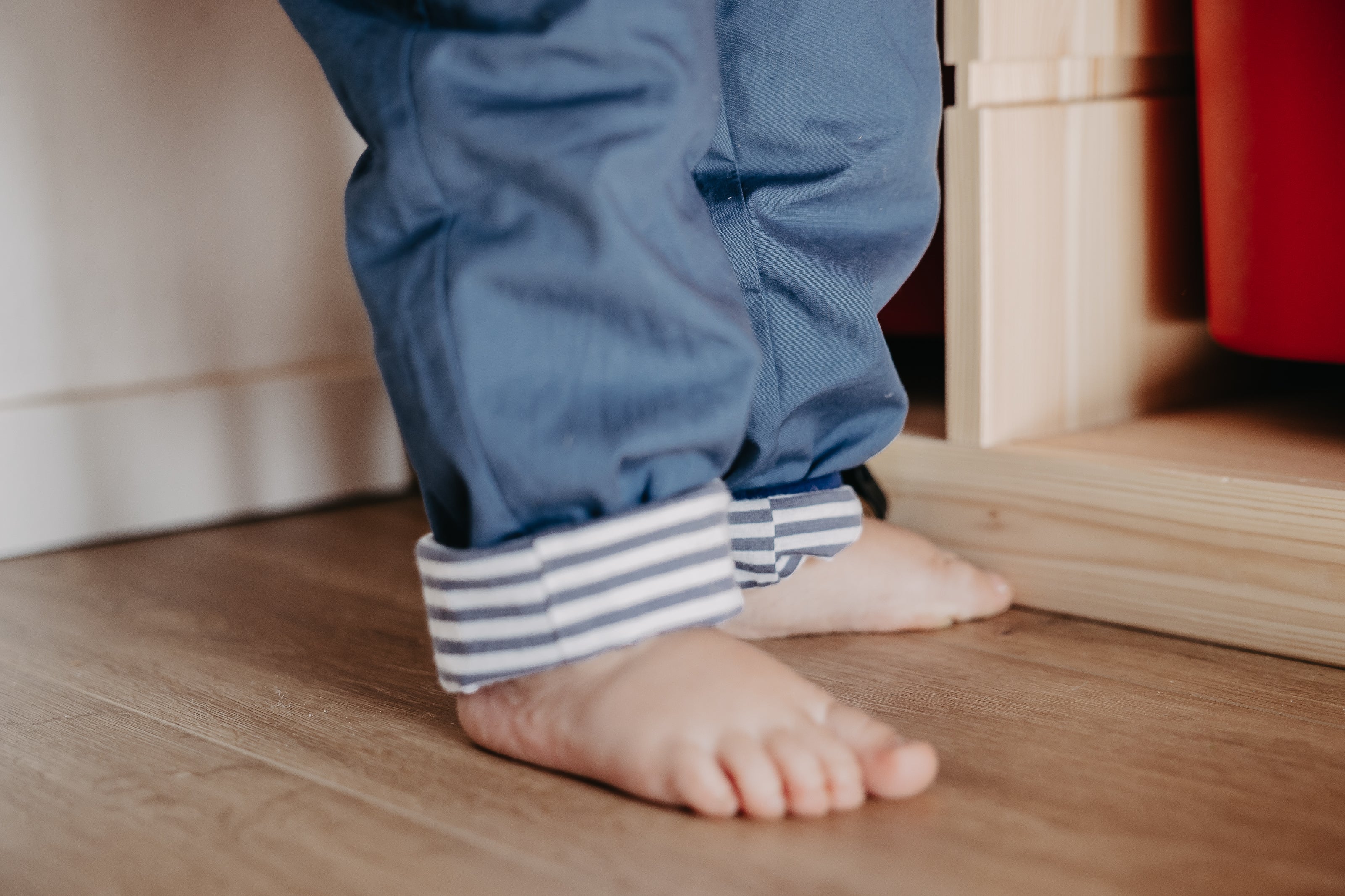 Diese robuste Hose aus Bio-Baumwolle passt besonders lange, da sie durch ihr durchdachtes Design über 4 Größen mitwächst.