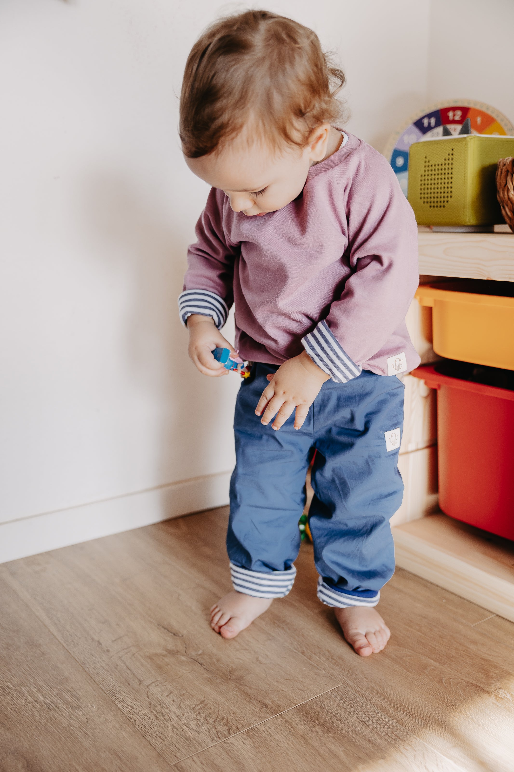 Unsere mitwachsende Kinderhose aus hochwertiger Bio-Popeline ist der perfekte Begleiter für das ganze Jahr. Popeline ist leicht, atmungsaktiv, besonders strapazierfähig und angenehm zu tragen. Durch seinen elastischen und vor allem langlebigen Gummibund aus Naturkautschuk und die Krempelfunktion an den Beinen, wächst unsere Kinderhose außerdem bis zu vier Größen mit.