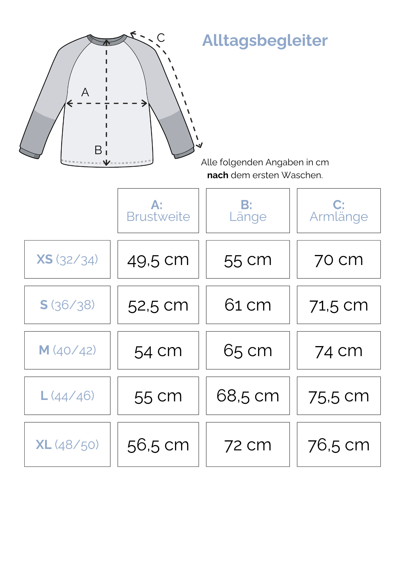 Der Schnitt ist so konzipiert, dass er über vier Konfektionsgrößen passt. Das sind im Schnitt 12cm Wachstum.
