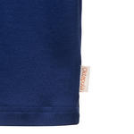 Raglan Shirt aus Bio-Baumwolle von Oktopulli in der Farbe Blau mit fliederfarbenen Ärmeln.