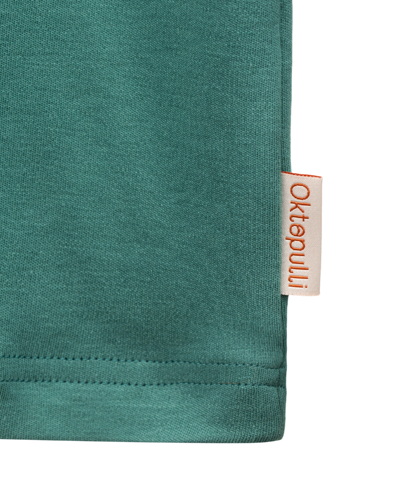 Ein grünes Raglan Shirt im Unisex-Schnitt aus Bio-Baumwolle der Marke Oktopulli