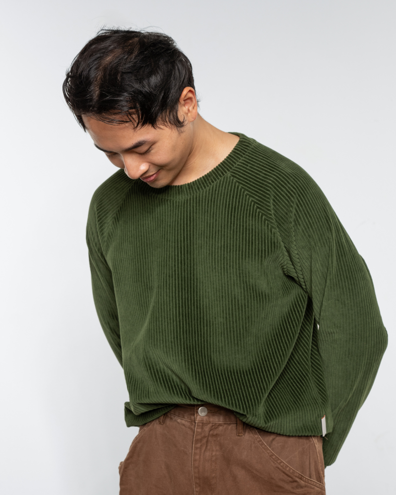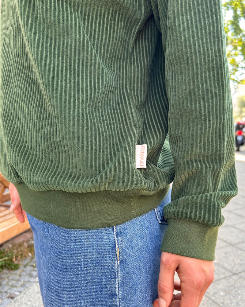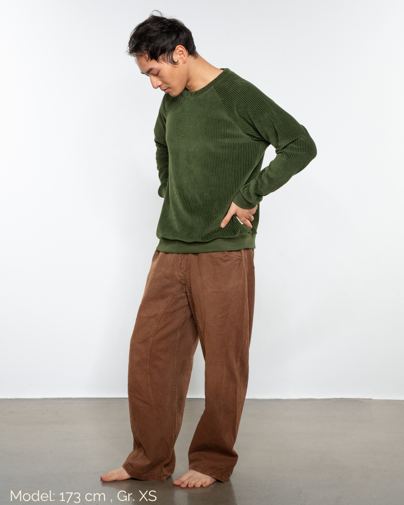 Unser Cordnicki Sweater ist ein zeitloser Klassiker. Sein Material ist aus 100% fairer Bio-Baumwolle und dadurch besonders weich und langlebig.