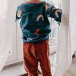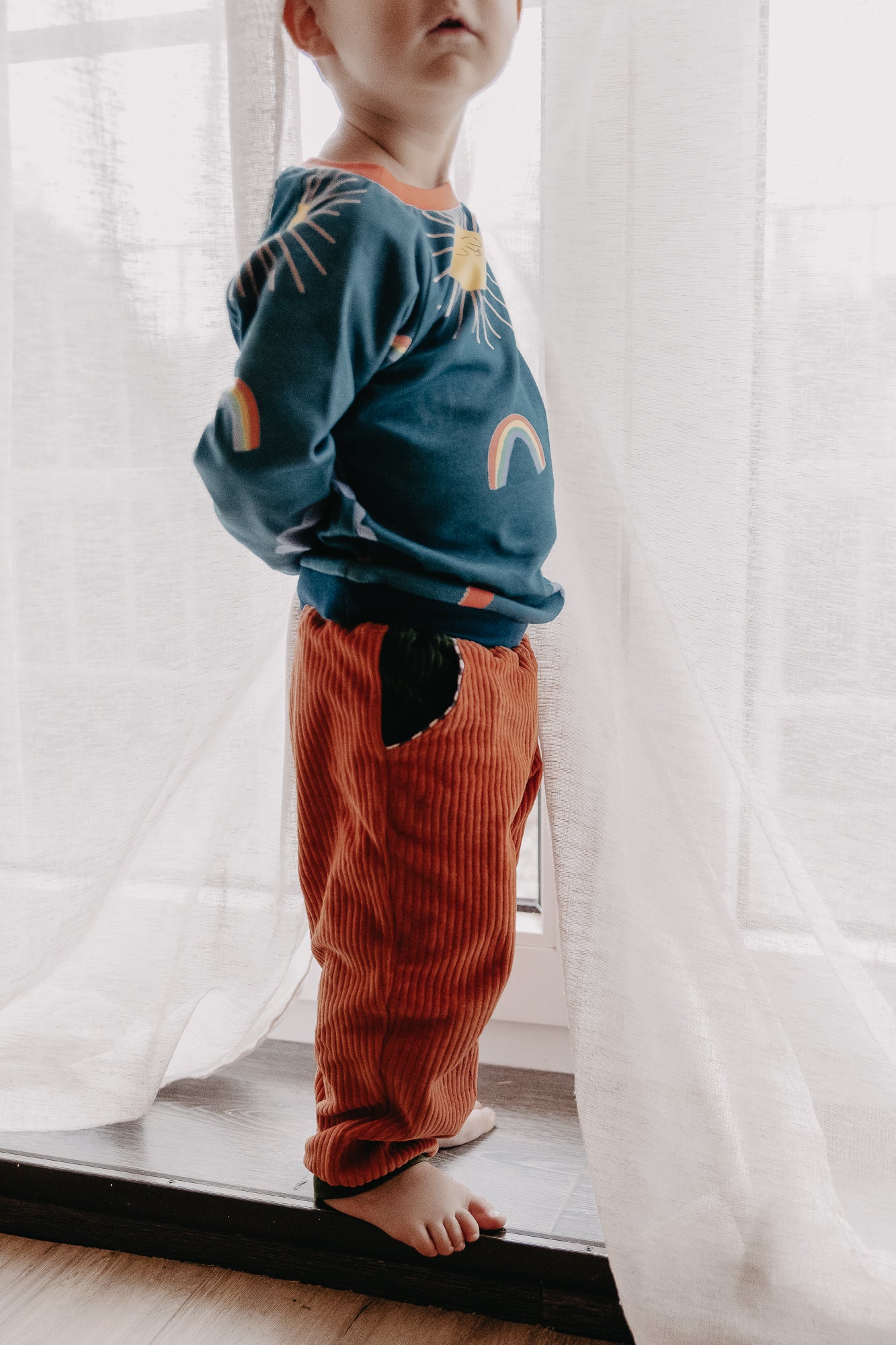 Our grow-with-me children's trousers made from robust organic corduroy are the perfect companion for late summer through spring. The combination of corduroy and lining makes these children's trousers particularly soft and comfortable. Thanks to the elastic and, above all, durable natural rubber waistband and the roll-up function on the legs, our children's trousers also grow up to four sizes with your child.