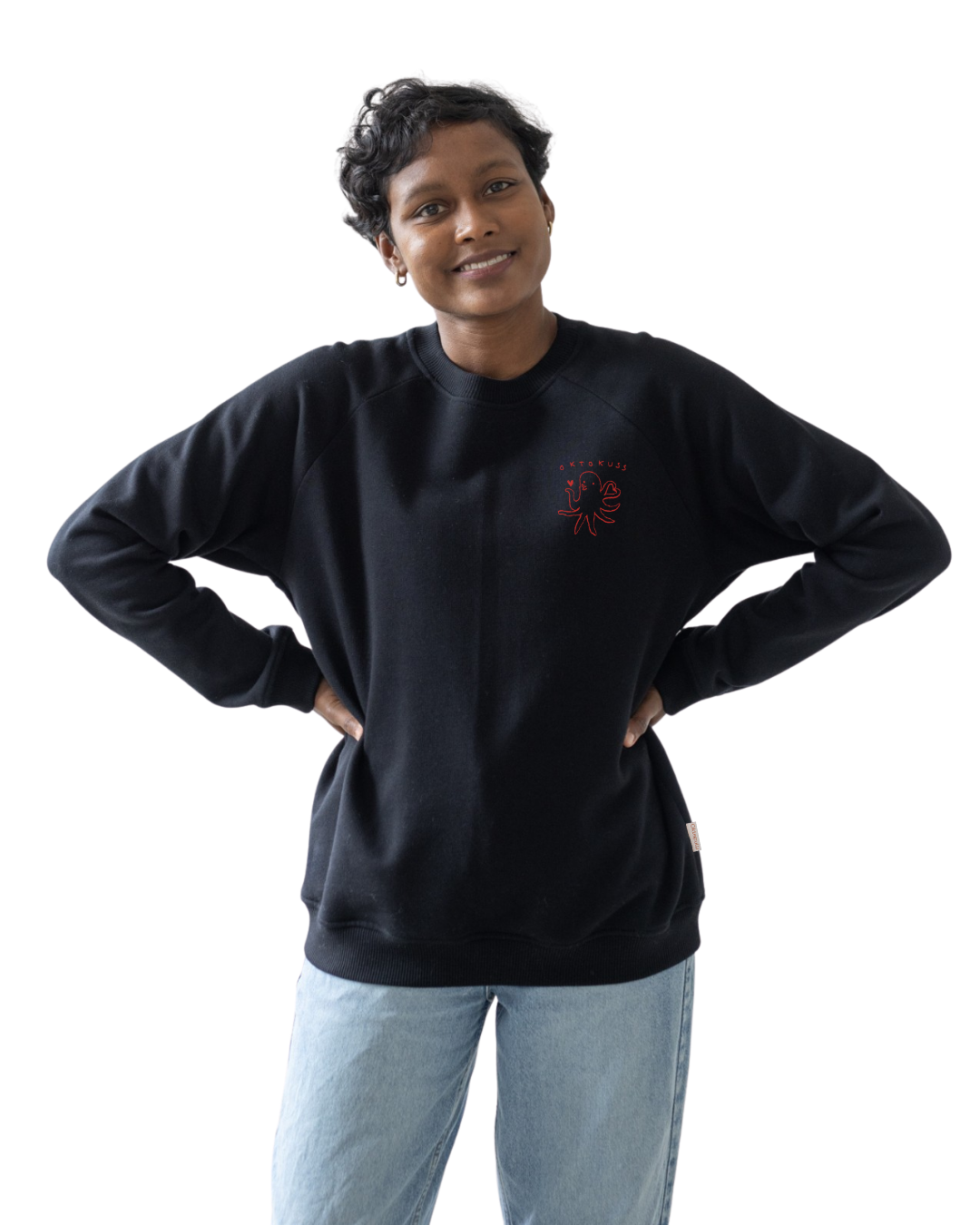 Der Oktopulli für Erwachsene ist ein Unisex-Modell. Durch seinen Raglanschnitt passt er sich perfekt der jeweiligen Körperform an. Der Sweat ist von Innen kuschelig angeraut und durch sein Material aus 100% Bio Baumwolle atmungsaktiv.