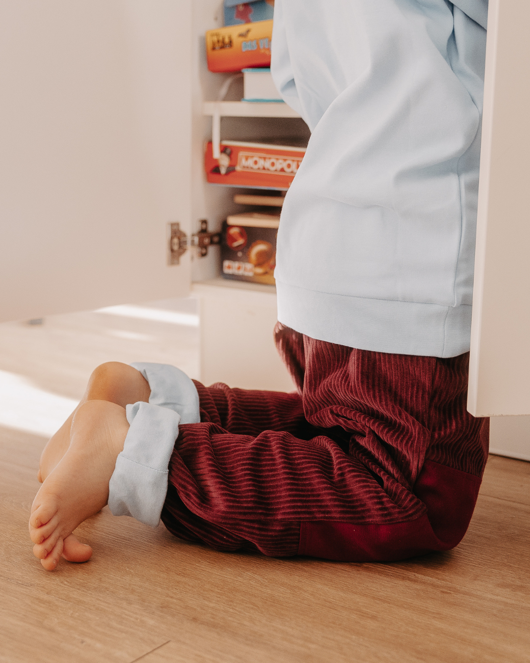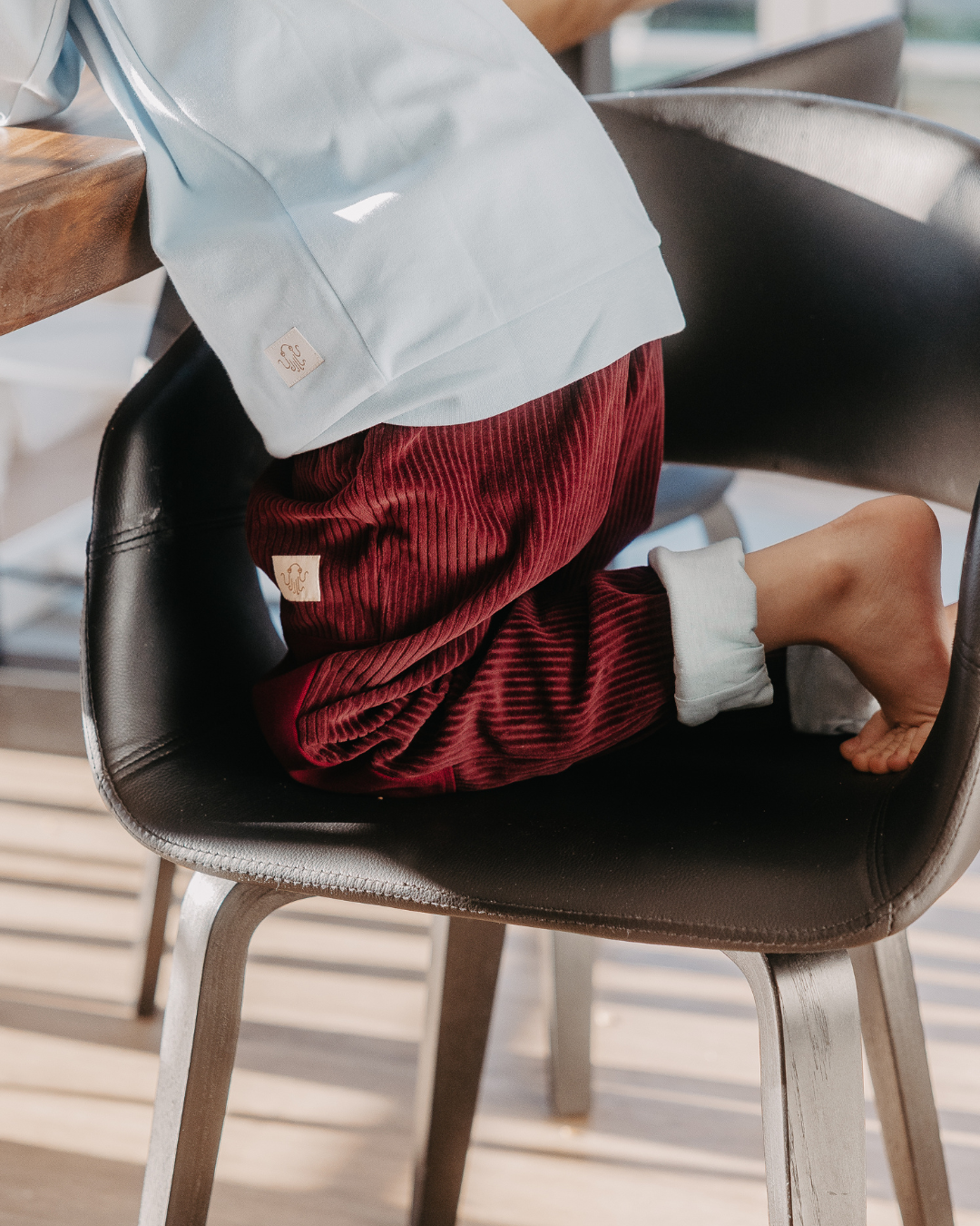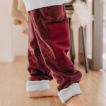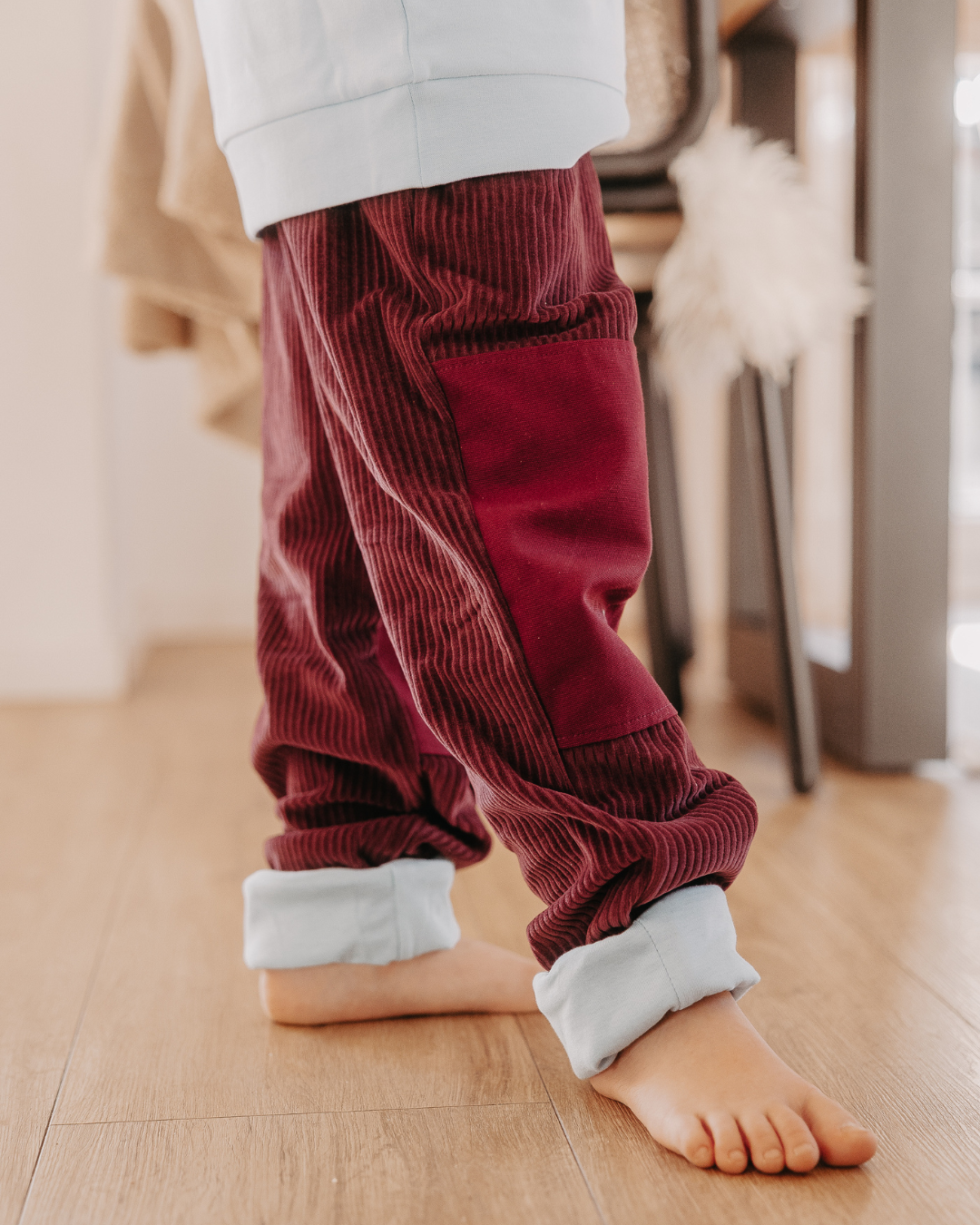 Our grow-with-me children's trousers made from robust organic corduroy are the perfect companion for late summer through spring. The combination of corduroy and lining makes these children's trousers particularly soft and comfortable. Thanks to the elastic and, above all, durable natural rubber waistband and the roll-up function on the legs, our children's trousers also grow up to four sizes with your child.