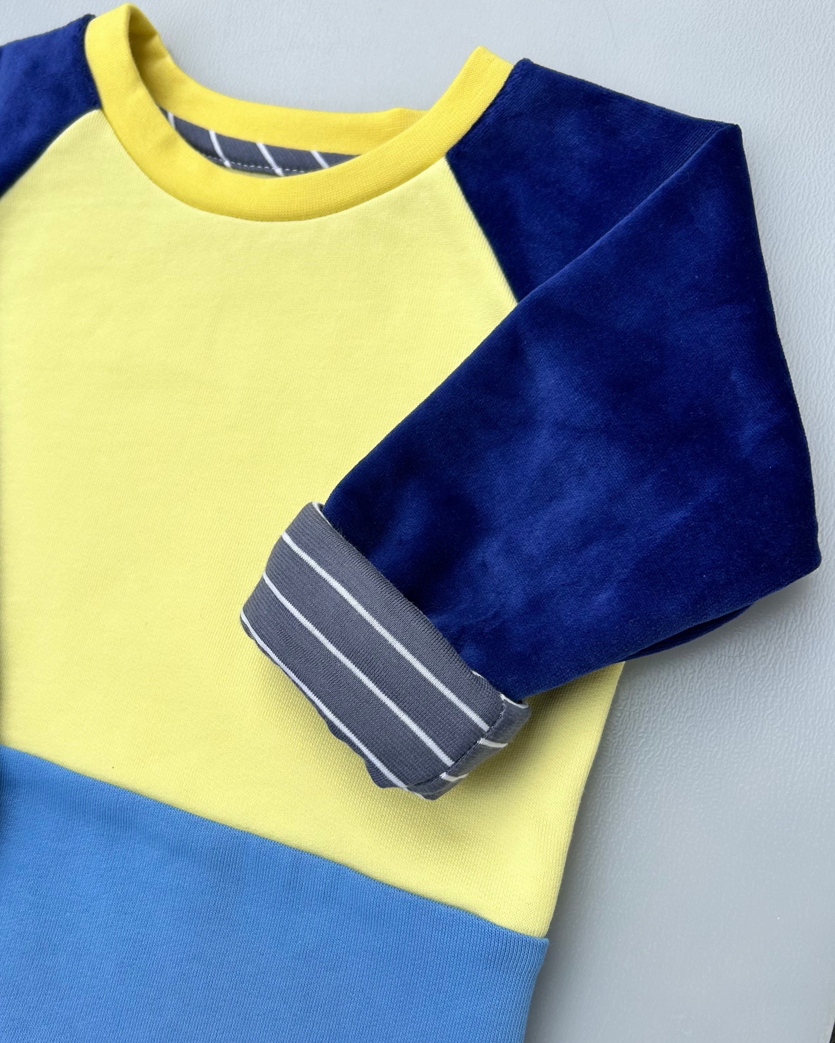 Mitwachsender warmer Pullover Kinder | Bio Baumwolle | | Zartgelb - Blau