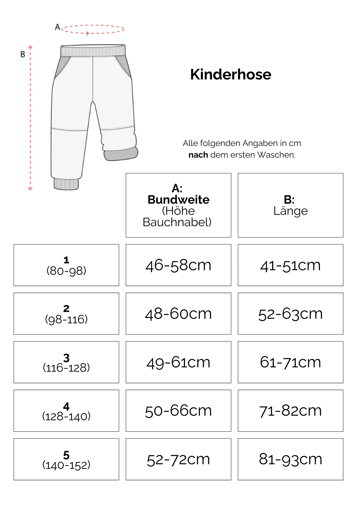 Der Schnitt ist so konzipiert, dass er über vier Konfektionsgrößen passt. Das sind im Schnitt 12cm Wachstum.